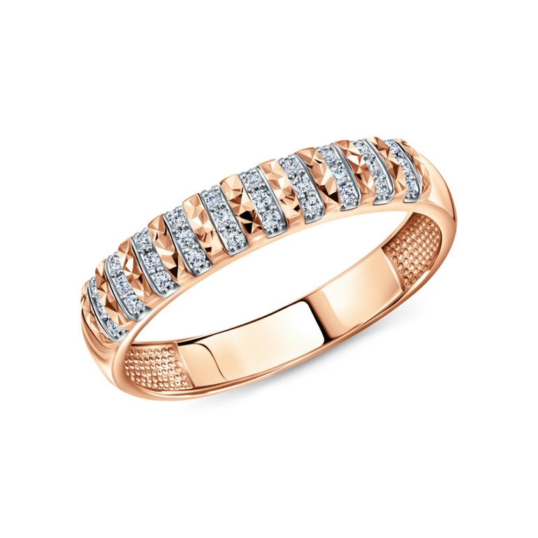 Кольцо с 30 бриллиантами природными, 0.125 карат, огранка круг 17 граней, цвет 2, чистота 2, тип огранки А; Розовое золото 585 пробы.