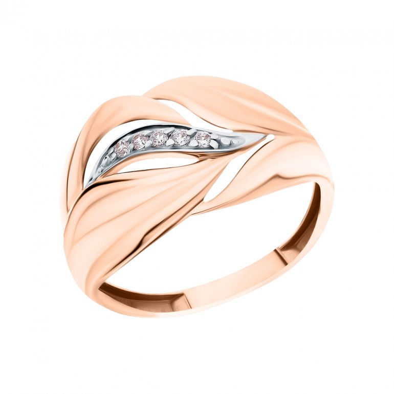 Кольцо, вставка: фианит; Розовое золото 585 пробы.