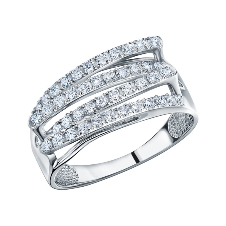 Кольцо с 45 бриллиантами, 0.535 карат, огранка круг 57 граней, цвет 3, чистота 6, тип огранки А; Белое золото 585 пробы.