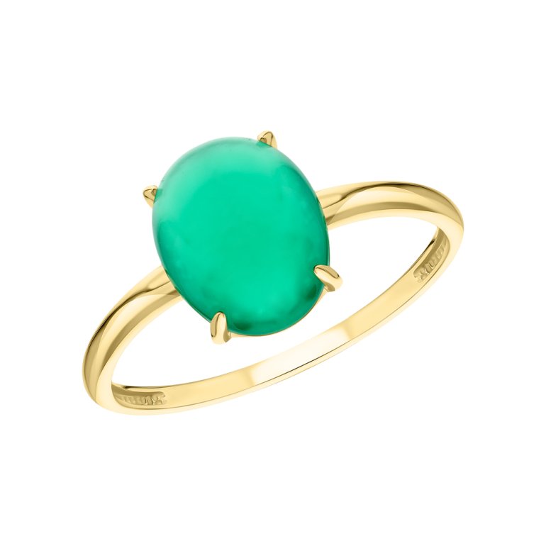 Кольцо с 1 агатом зеленым, тип огранки Б; Желтое золото 585 пробы.
