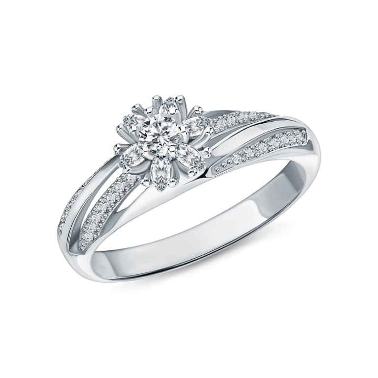 Кольцо, вставка: фианитом бесцветным; Серебро 925 пробы.