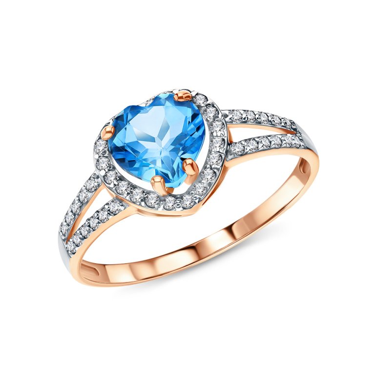 Кольцо с 1 топазом свисс природным, 1.46 карат, тип огранки Б; фианитом бесцветным; Розовое золото 585 пробы.
