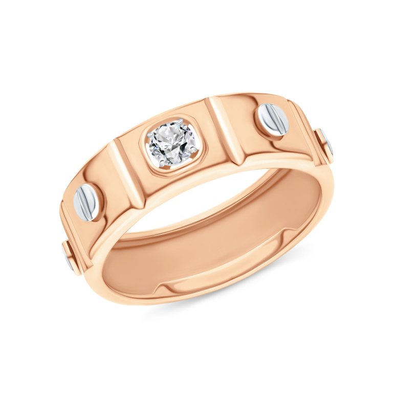 Кольцо, вставка: фианитом бесцветным; Розовое и белое золото 585 пробы.