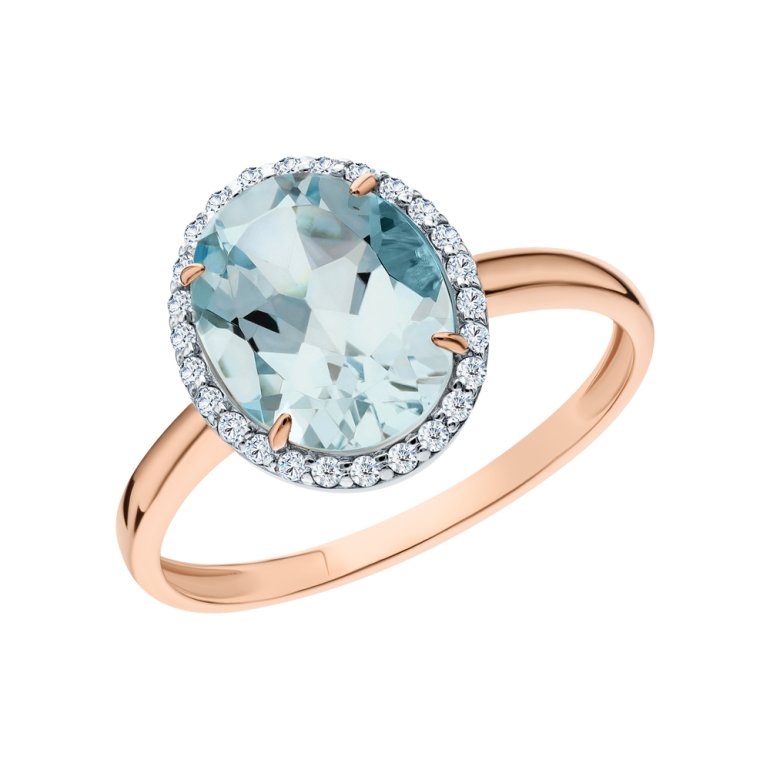 Кольцо с 1 топазом скай, 3. карат, тип огранки Б; фианитом бесцветным; Розовое золото 585 пробы.
