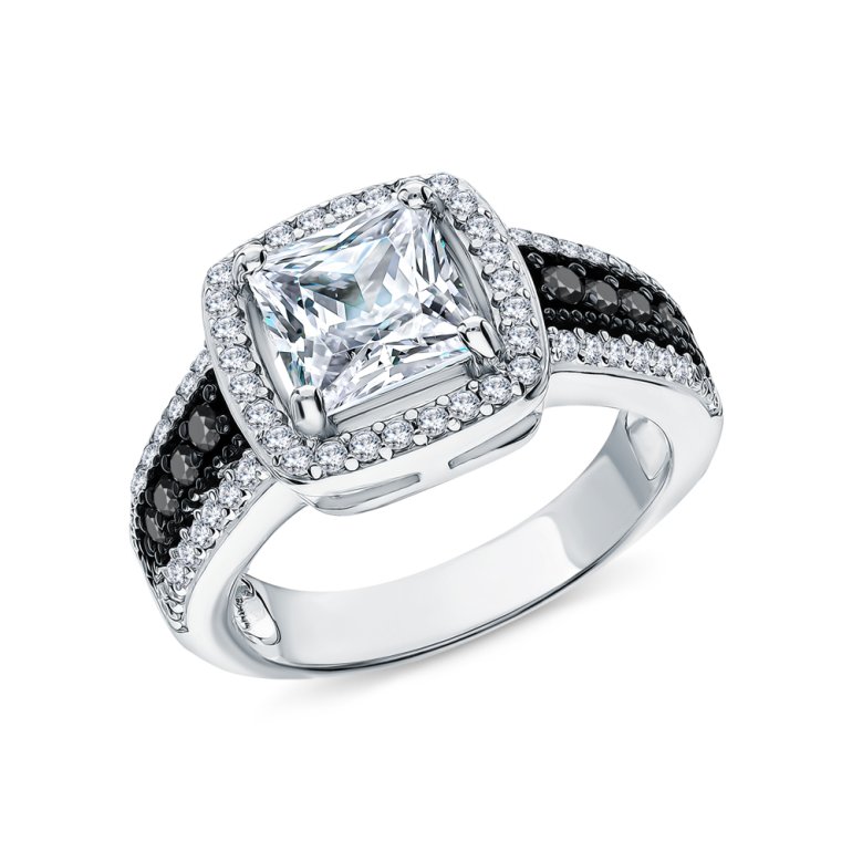 Кольцо, вставка: фианитом бесцветным;  черным фианитом; Серебро 925 пробы.