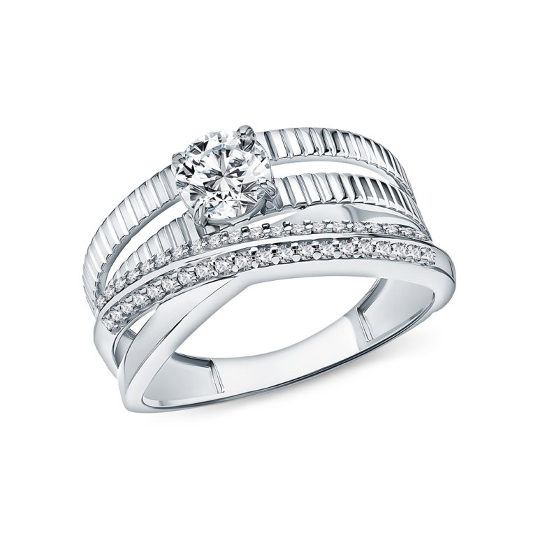 Кольцо, вставка: фианитом бесцветным; Серебро 925 пробы.