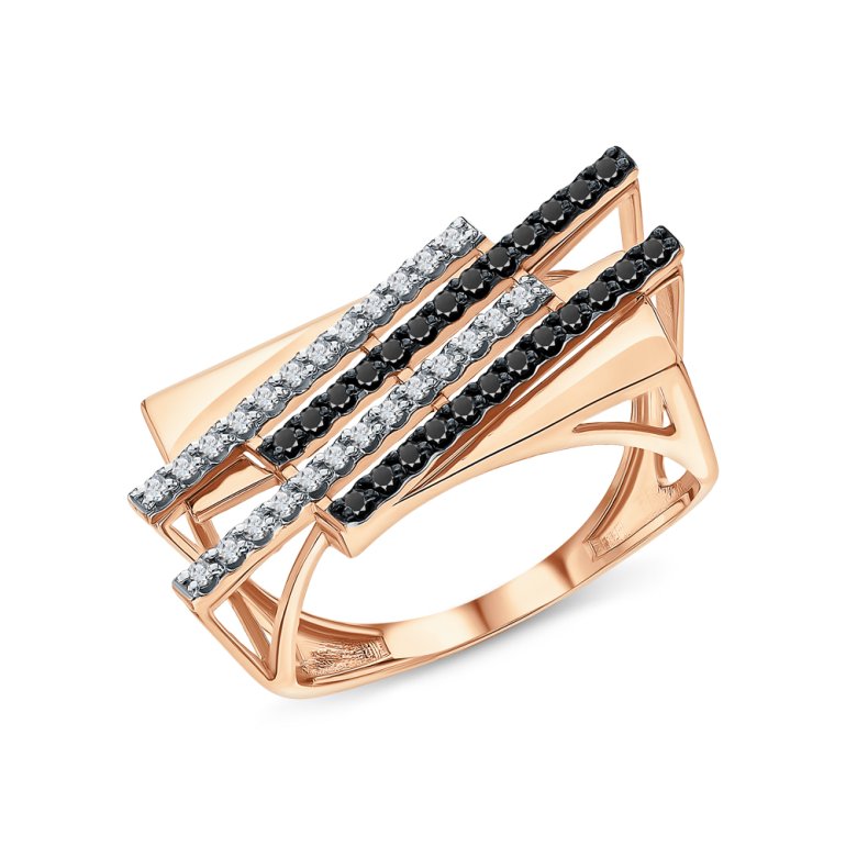 Кольцо, вставка: фианитом бесцветным;  черным фианитом; Розовое золото 585 пробы.