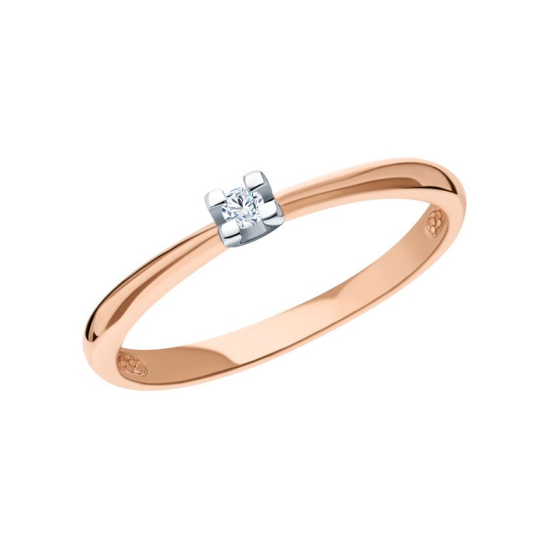 Кольцо с 1 бриллиантом природным, 0.045 карат, огранка круг 57 граней, цвет 4, чистота 6, тип огранки А; Розовое золото 585 пробы.