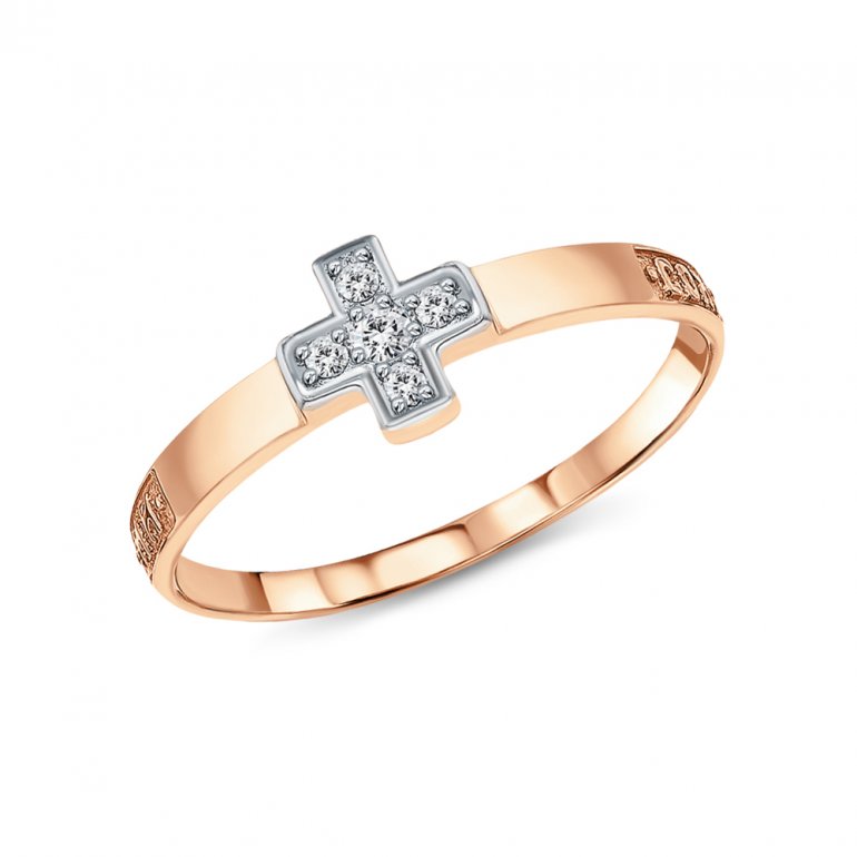 Кольцо, вставка: фианитом бесцветным; Розовое золото 585 пробы.
