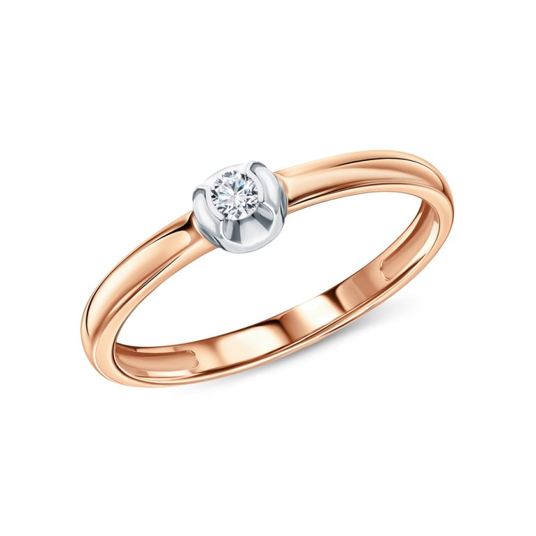 Кольцо с 1 бриллиантом природным, 0.059 карат, огранка круг 57 граней, цвет 3, чистота 6, тип огранки А; Розовое золото 585 пробы.