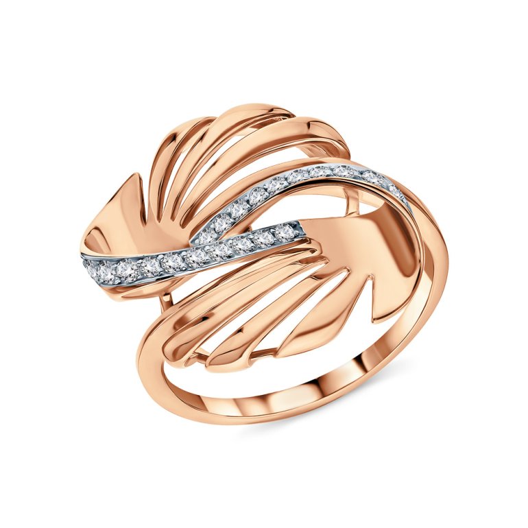 Кольцо, вставка: фианитом бесцветным; Розовое золото 585 пробы.