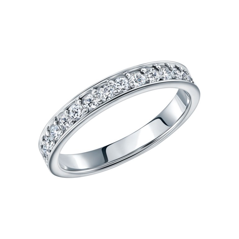 Кольцо с 15 бриллиантами природными, 0.438 карат, огранка круг 57 граней, цвет 4, чистота 6, тип огранки А; Белое золото 585 пробы.