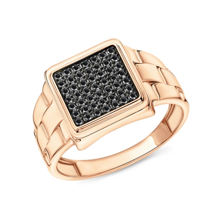 Кольцо, вставка: черным фианитом; Розовое золото 585 пробы.