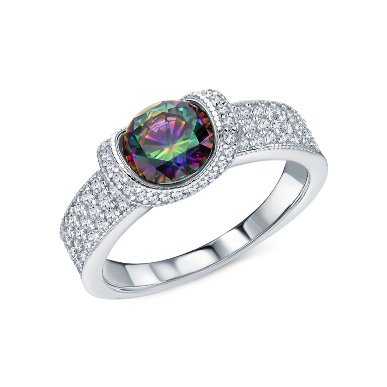 Кольцо, вставка: фианит мистик;  фианитом бесцветным; Серебро 925 пробы.