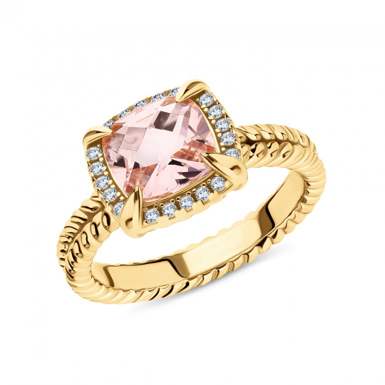 Кольцо, вставка: фианитом бесцветным;  фианит розовый; Серебро 925 пробы.