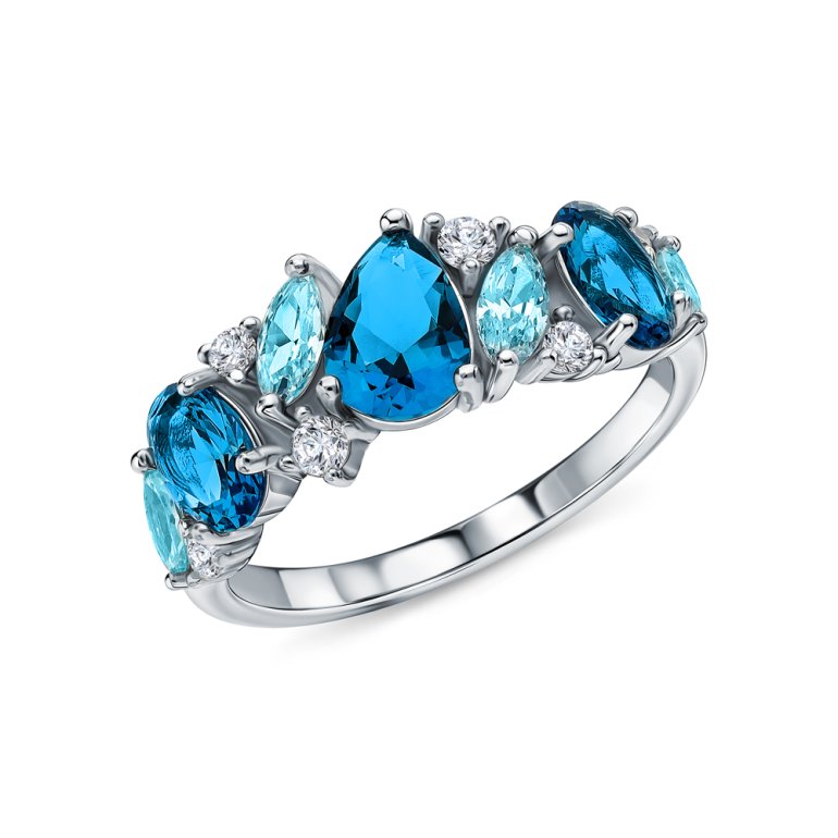 Кольцо, вставка: фианит голубой;  фианитом бесцветным;  алпанит синий; Серебро 925 пробы.