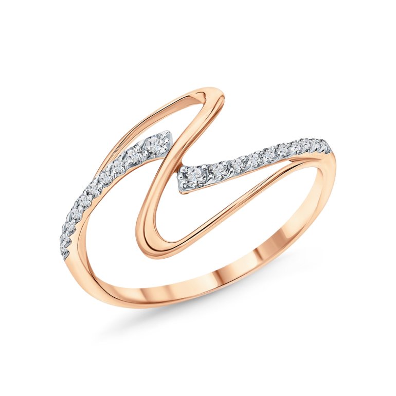 Кольцо с 2 фианитами бесцветными, 0.05 карат, тип огранки Б; 2 фианитами бесцветными, 0.05 карат, тип огранки Б; 16 фианитами бесцветными, 0.15 карат, тип огранки Б; Розовое золото 585 пробы.