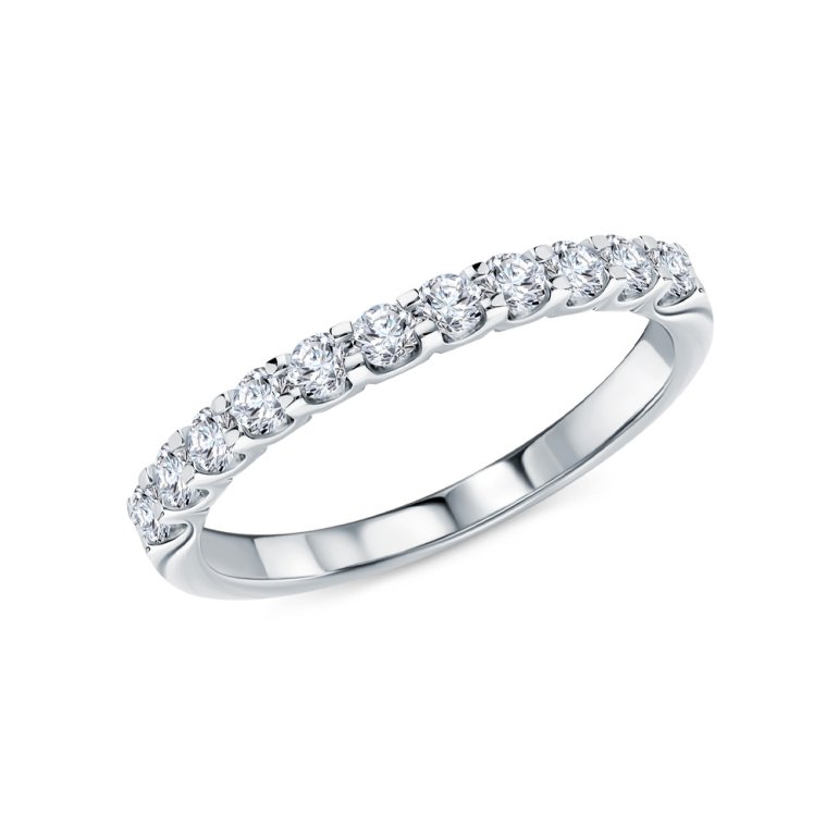 Кольцо с 11 бриллиантами, 0.496 карат, огранка круг 57 граней, цвет 3, чистота 6, тип огранки А; Белое золото 585 пробы.