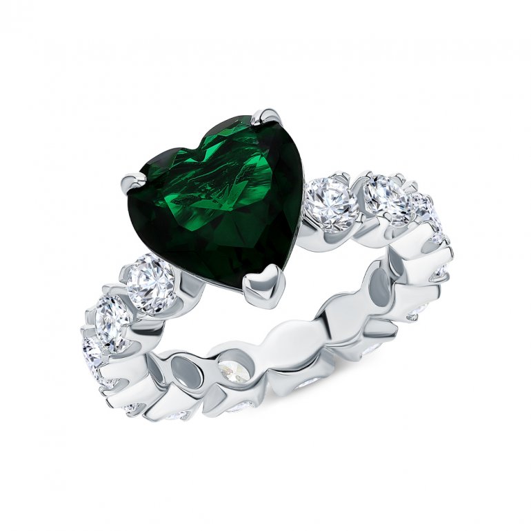 Кольцо, вставка: фианитом бесцветным;  алпанит зеленый; Серебро 925 пробы.