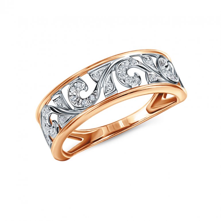 Кольцо с 32 бриллиантами природными, 0.057 карат, огранка круг 17 граней, цвет 2, чистота 2, тип огранки Б; Розовое золото 585 пробы.