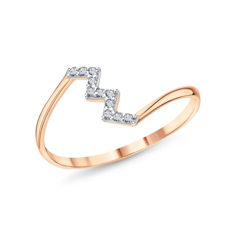 Кольцо с 10 фианитами бесцветными, 0.1 карат, тип огранки Б; 1 фианитом бесцветным, 0.009 карат, тип огранки Б; Розовое золото 585 пробы.