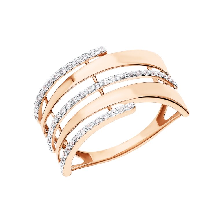 Кольцо, вставка: фианит бесцветный; Розовое золото 585 пробы.