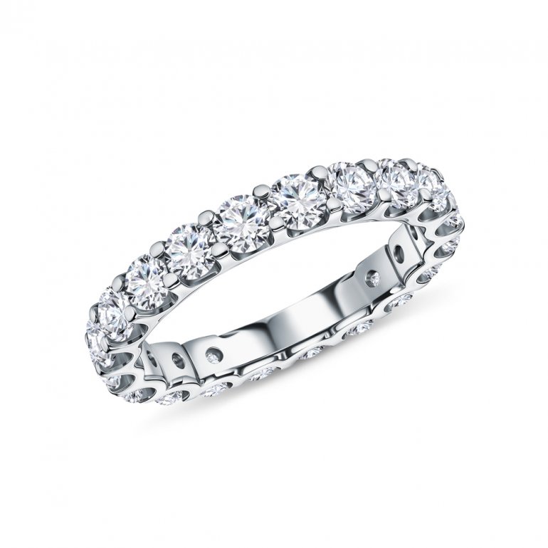 Кольцо с 20 бриллиантами природными, 2.149 карат, огранка круг 57 граней, цвет 3, чистота 6, тип огранки А; Белое золото 585 пробы.