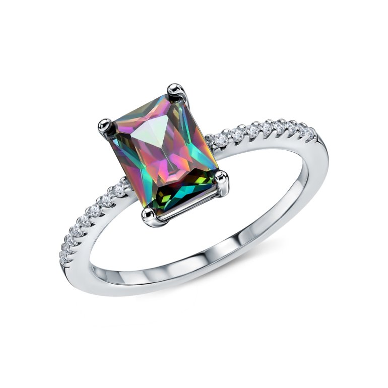 Кольцо, вставка: фианит мистик;  фианитом бесцветным; Серебро 925 пробы.