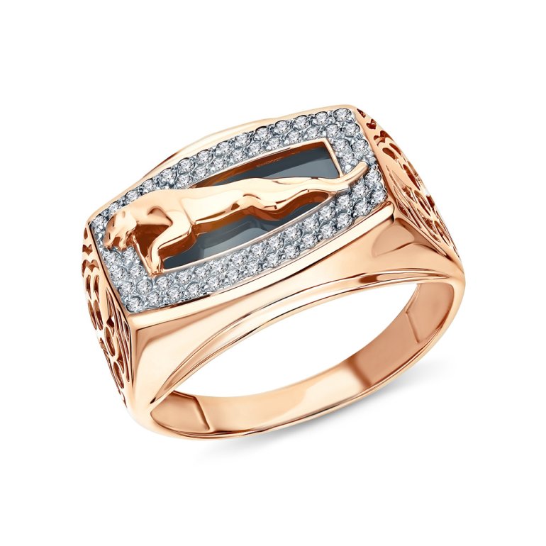Кольцо, вставка: фианитом бесцветным;  черным фианитом; Розовое золото 585 пробы.