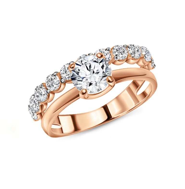Кольцо, вставка: фианитом бесцветным; Розовое золото 585 пробы.