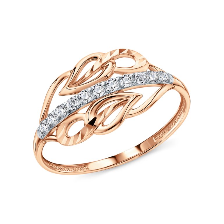 Кольцо, вставка: фианитом бесцветным; Розовое золото 375 пробы.
