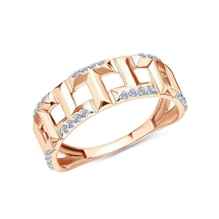 Кольцо, вставка: фианитом бесцветным; Розовое золото 585 пробы.