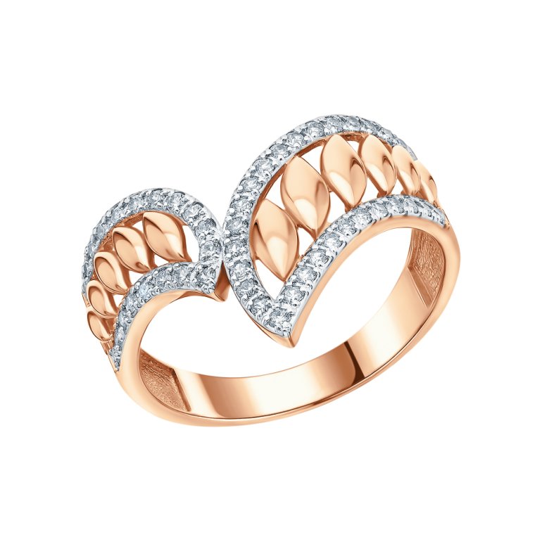 Кольцо, вставка: фианитом бесцветным; Розовое золото 585 пробы.