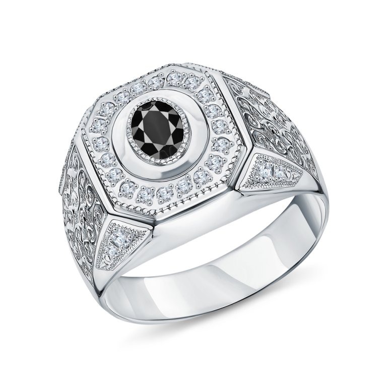 Кольцо, вставка: фианитом бесцветным;  черным фианитом; Серебро 925 пробы.