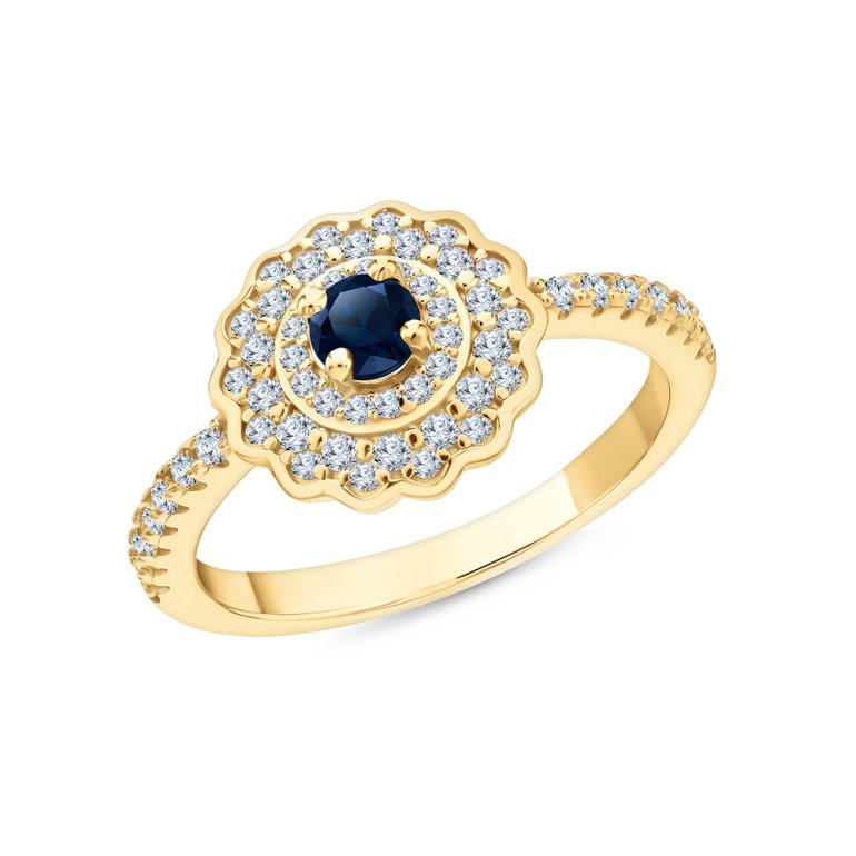 Серебряное кольцо с фианитами и сапфирами природными S42696-K9Y-02 Кольца SUNLIGHT | V4.Ru: Маркетплейс