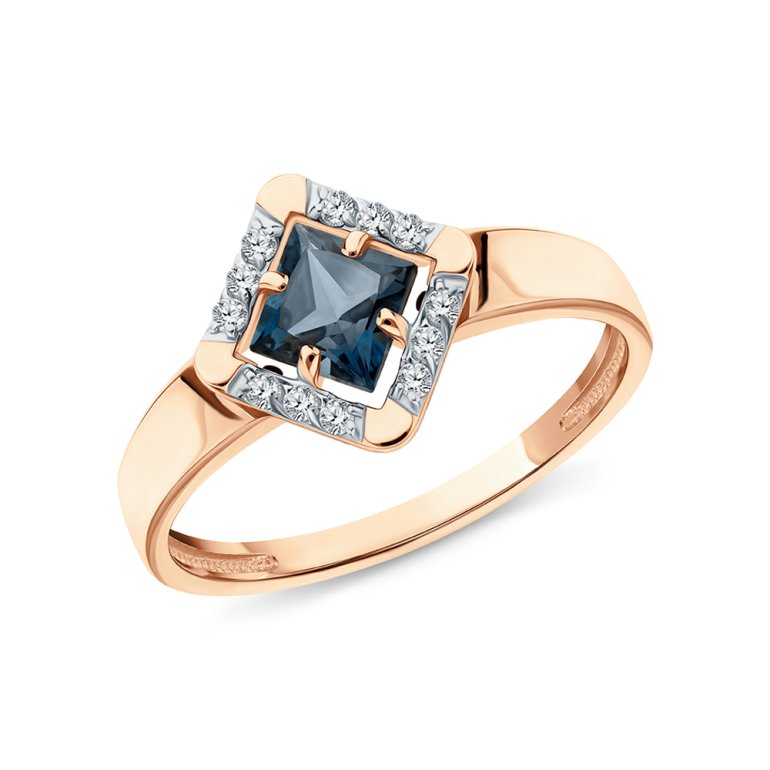 Кольцо с 1 топазом лондон, 0.775 карат, тип огранки Б; фианитом бесцветным; Розовое золото 585 пробы.