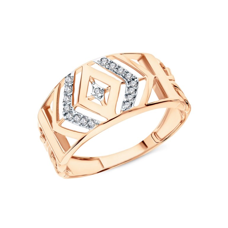 Кольцо, вставка: фианит бесцветный; Розовое золото 585 пробы.