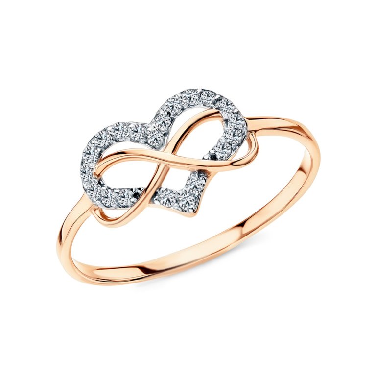 Кольцо, вставка: фианит бесцветный; Розовое золото 585 пробы.