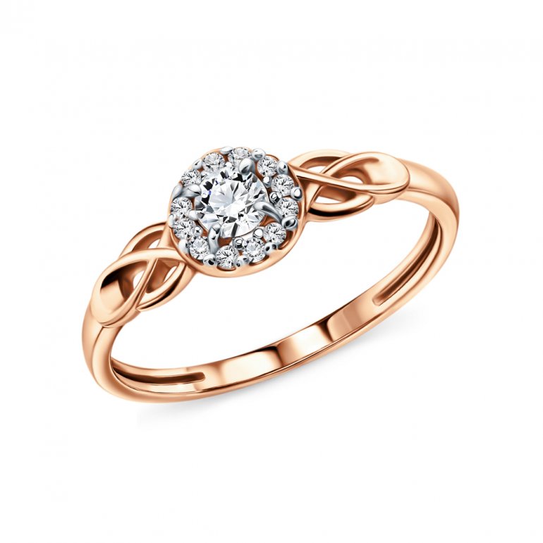 Кольцо, вставка: фианитом бесцветным; Розовое золото 585 пробы.
