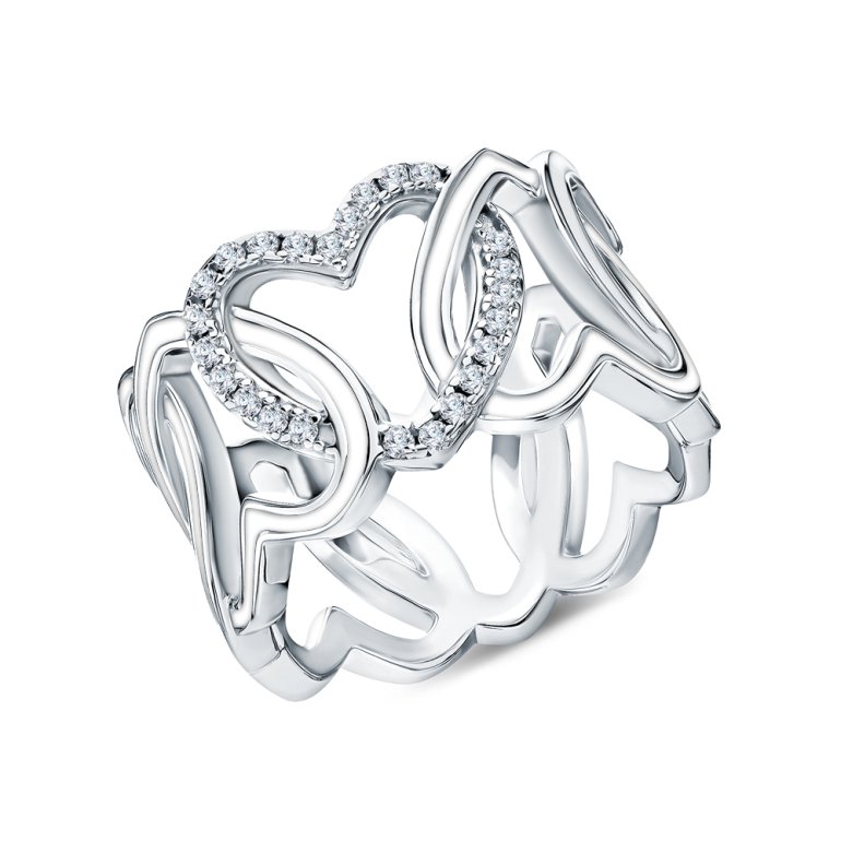 Серебряное кольцо с эмалью и фианитами S31024-K9W-01 Кольца SUNLIGHT | V4.Ru: Маркетплейс