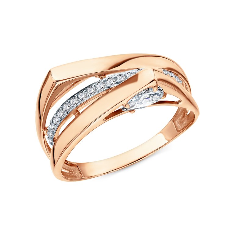 Кольцо, вставка: фианитом бесцветным; Розовое золото 585 пробы.