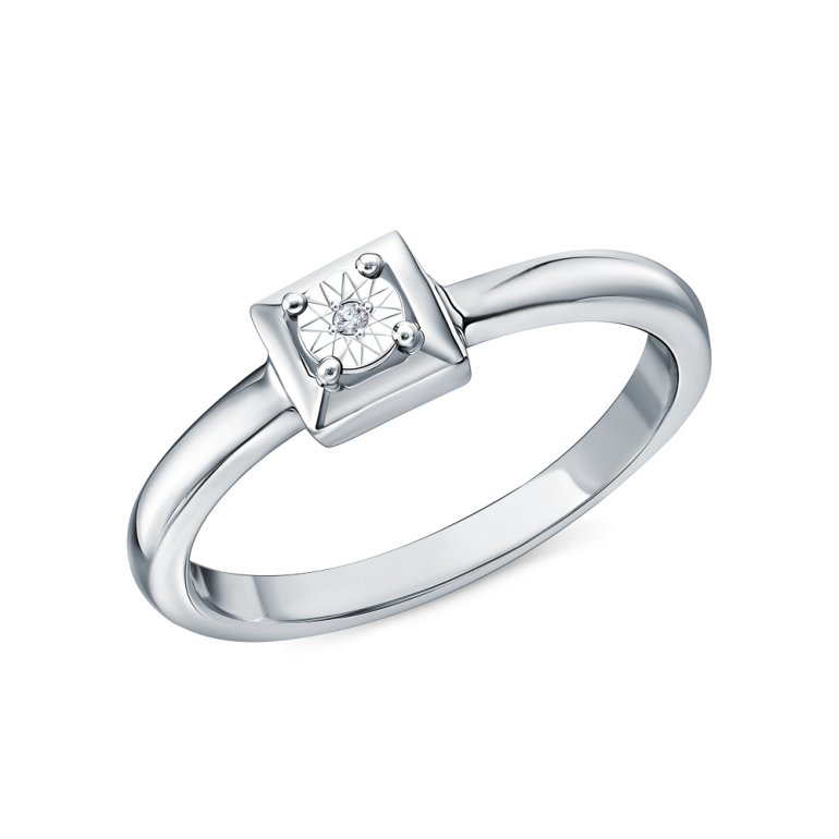 Кольцо с 1 бриллиантом природным, 0.005 карат, огранка круг 17 граней, цвет 2, чистота 4, тип огранки Б; Серебро 925 пробы.
