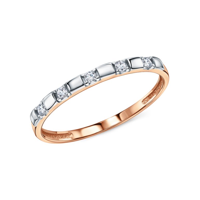Кольцо с 5 бриллиантами, 0.072 карат, огранка круг 57 граней, цвет 4, чистота 5, тип огранки А; Розовое золото 585 пробы.