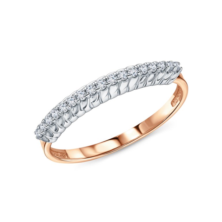 Кольцо с 17 бриллиантами, 0.126 карат, огранка круг 57 граней, цвет 4, чистота 5, тип огранки А; Розовое золото 585 пробы.