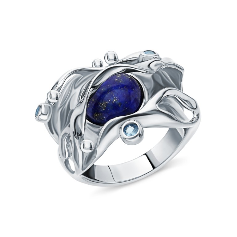 Кольцо с 1 лазуритом; шпинель голубая синтетическая; Серебро 925 пробы.