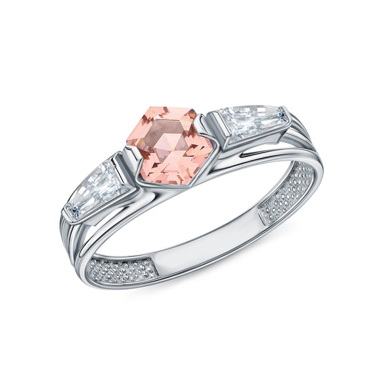 Кольцо, вставка: ситалл морганит;  фианитом бесцветным; Серебро 925 пробы.