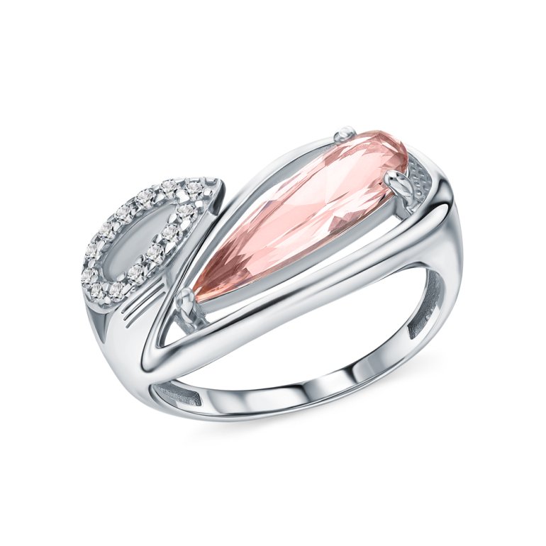 Кольцо, вставка: ситалл морганит;  фианитом бесцветным; Серебро 925 пробы.