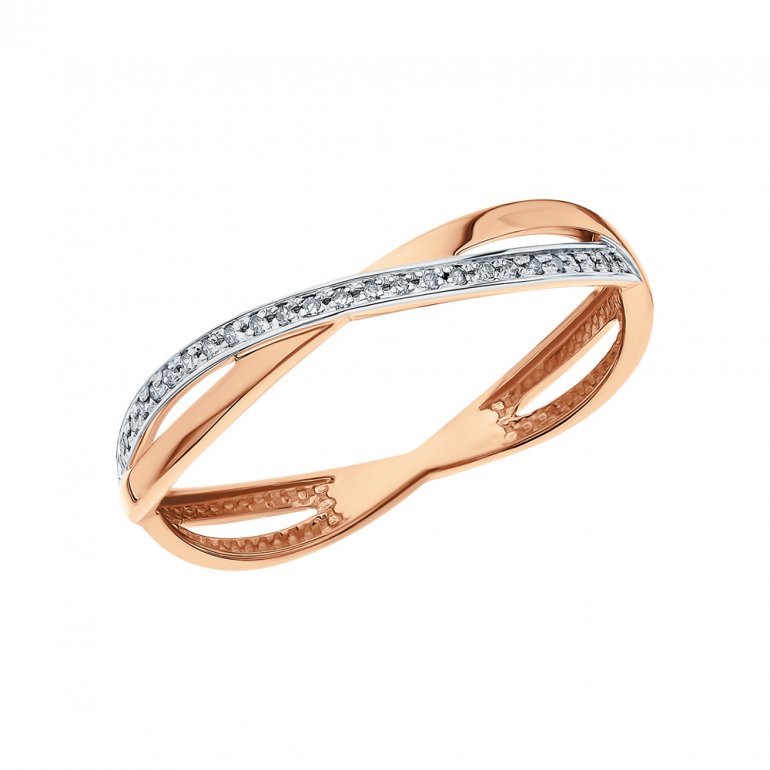 Кольцо с 21 бриллиантом, 0.038 карат, огранка круг 17 граней, цвет 2, чистота 2, тип огранки А; Розовое золото 585 пробы.