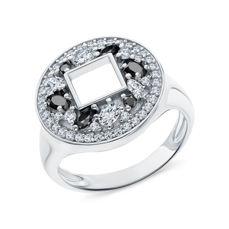 Серебряное кольцо с фианитами и шпинелями природными S42802-K9W-01 Кольца SUNLIGHT | V4.Ru: Маркетплейс
