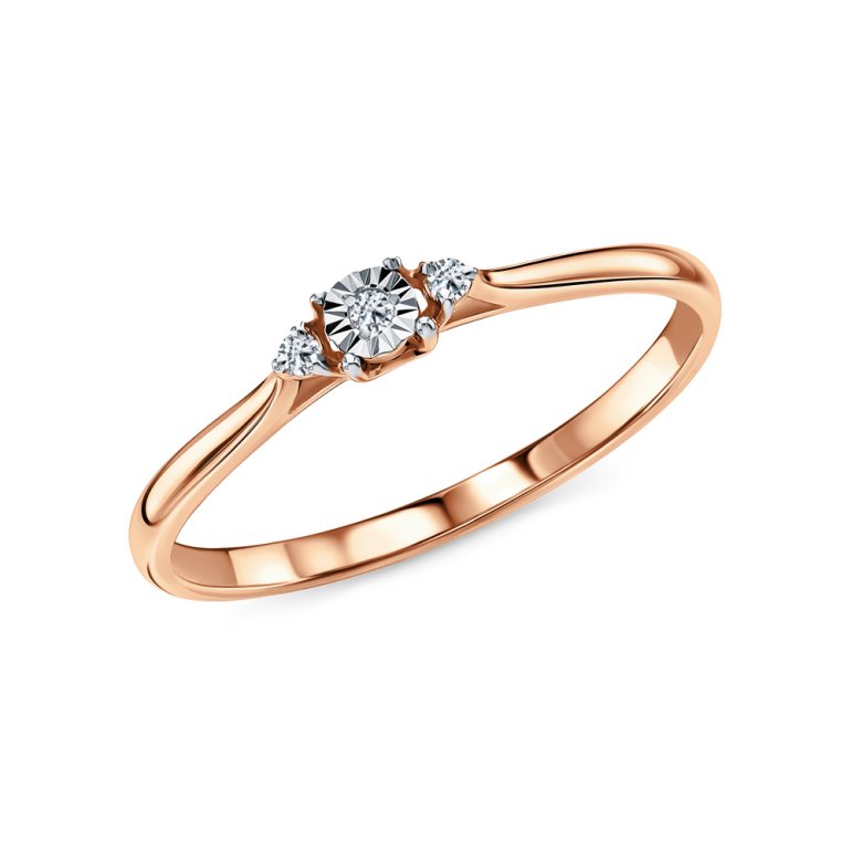 Кольцо с 3 бриллиантами природными, 0.024 карат, огранка круг 57 граней, цвет 3, чистота 6, тип огранки А; Розовое и белое золото 585 пробы.